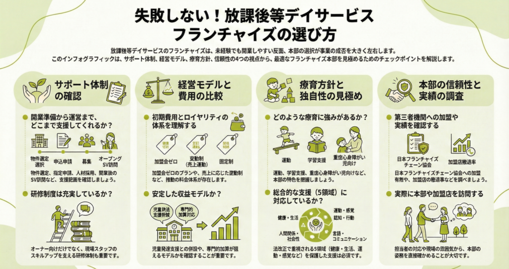まとめ|放課後等デイサービスのフランチャイズは“支援方針×運営支援×契約条件”で選ぶ